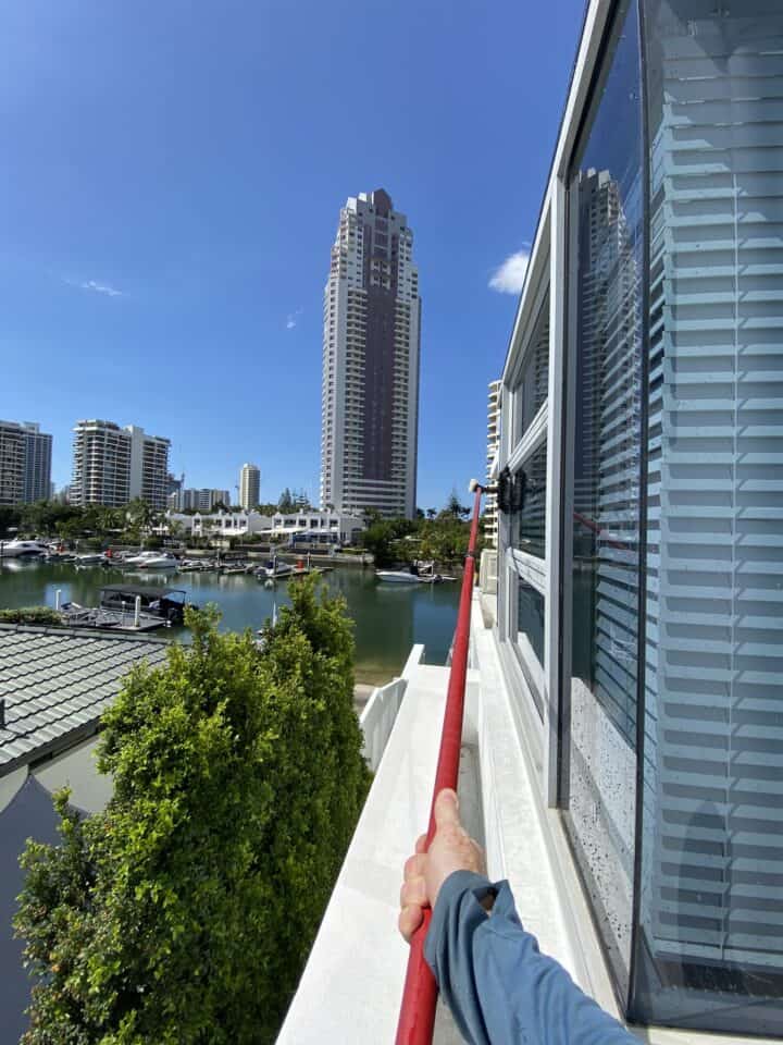 Utilizing telescopic poles with specialized brushes, we pump 100% purified water through the system. This approach ensures a residue-free and streakless result, leaving windows crystal-clear.